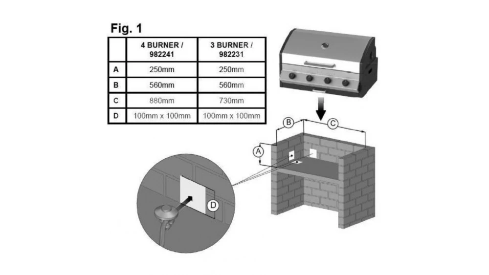 The Cadac Meridian 4 Burner Built Gas BBQ is designed to fit any outdoor “built-in” area. They fit easily into any flat recess on any server. The gas hose connects normally and the gas cylinder can be placed up to 1,5m away from the BBQ.