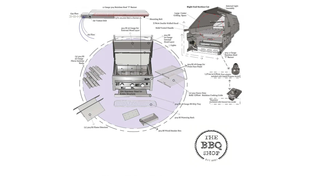 The Sunstone Sun Series 3 Burner Gas BBQ is the perfect centrepiece for any outdoor kitchen. Constructed completely from 304 grade stainless-steel which is fully welded for extra durability. This is combined with a double walled hood insulates perfectly and is finished with stylish polished accents.