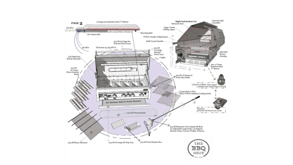 Sunstone Sun Series 5 Burner Built In Gas BBQ